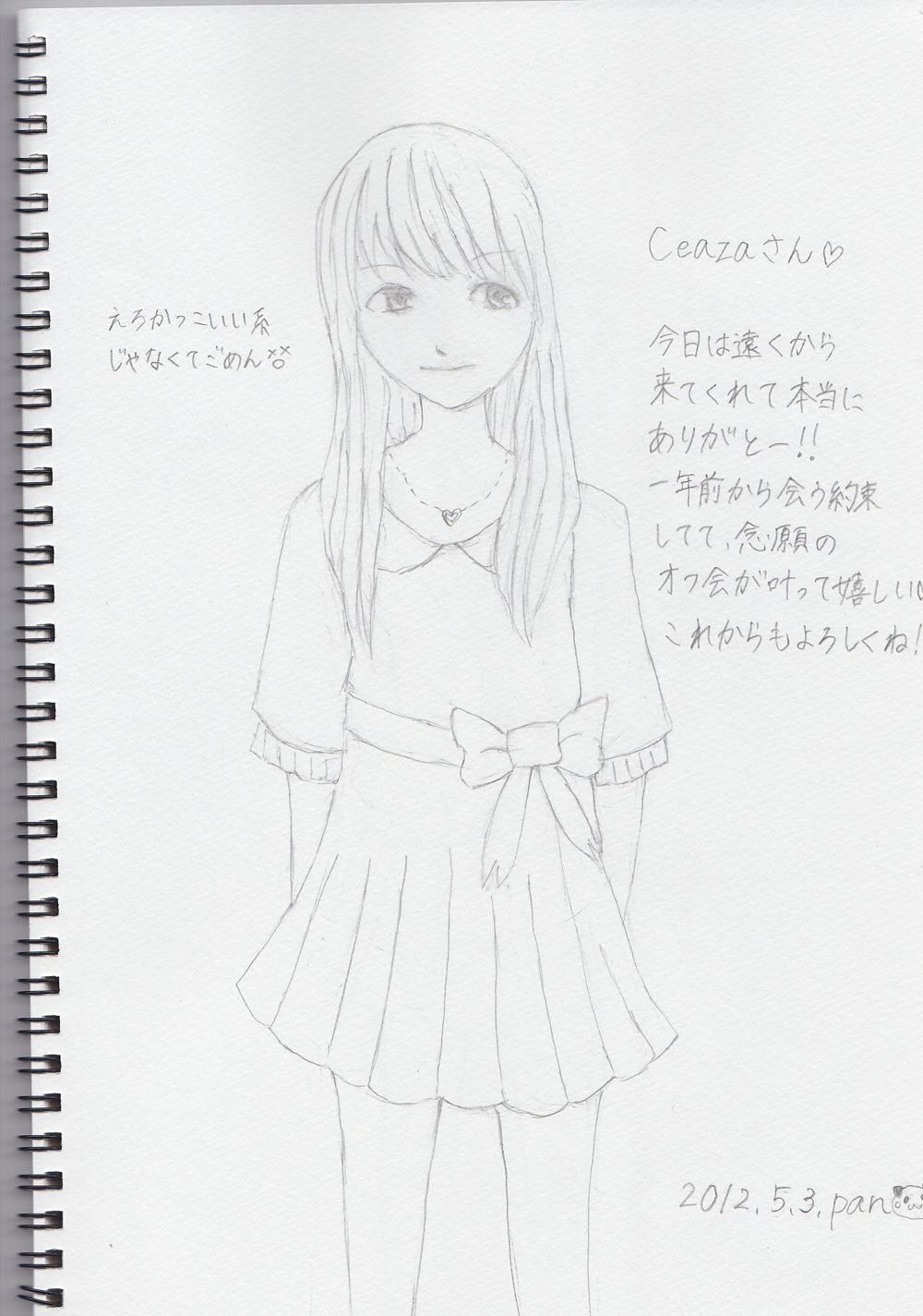 その後はカラオケに入って歌を歌うわけでもなくもくもくと三人でスケブ書いてました。