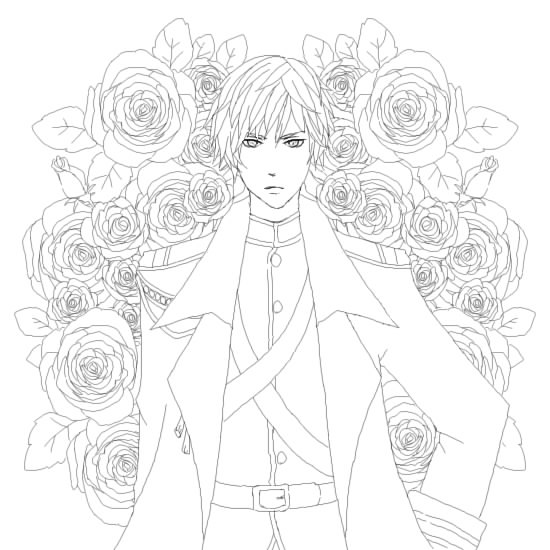 薔薇は三つしか描いてなくて後はコピー反転の繰り返しです。